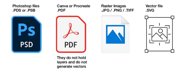 Everything above applies mostly to logos, original illustrations, or any element you want to appear in your design exactly as-is. These require high-fidelity, scalable files to ensure they print clearly.